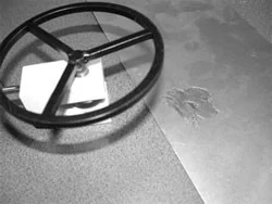 1. На сторону листа противоположную стороне измерения нанести слой консистентной смазки (литол, солидол, циатим) в том месте, где будет прижиматься опорная шайба струбцины (рис.2).