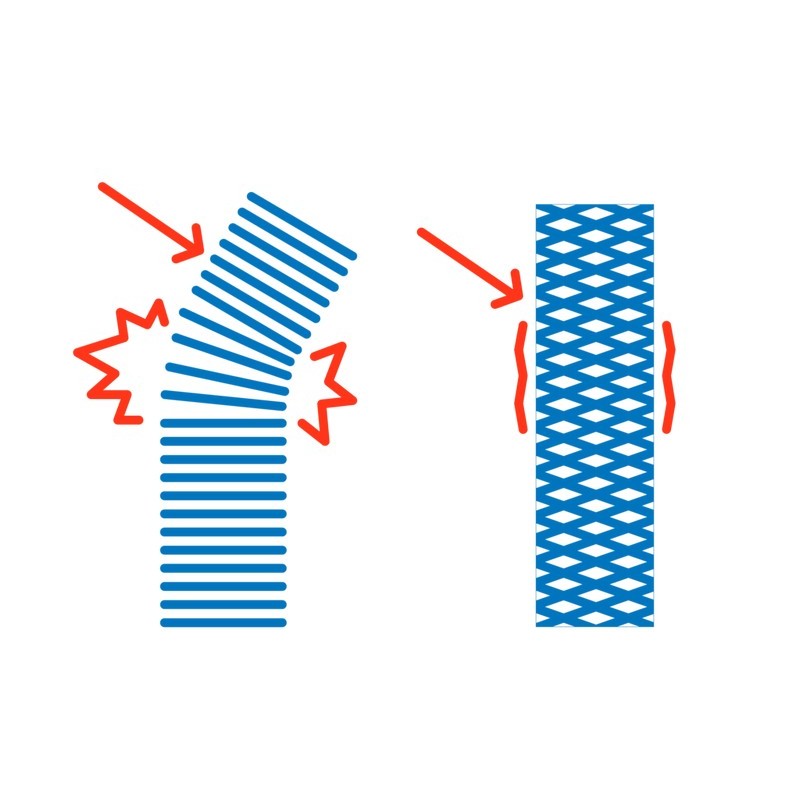 ⦁ Благодаря объемной, а не послойной укладке нитей, технология 5Dtech армирует структуру изделия. Прочность выше в 4 раза при печати в 5D режиме Spiral, согласно результатам испытания проведенного НИЦ «Курчатовский институт».