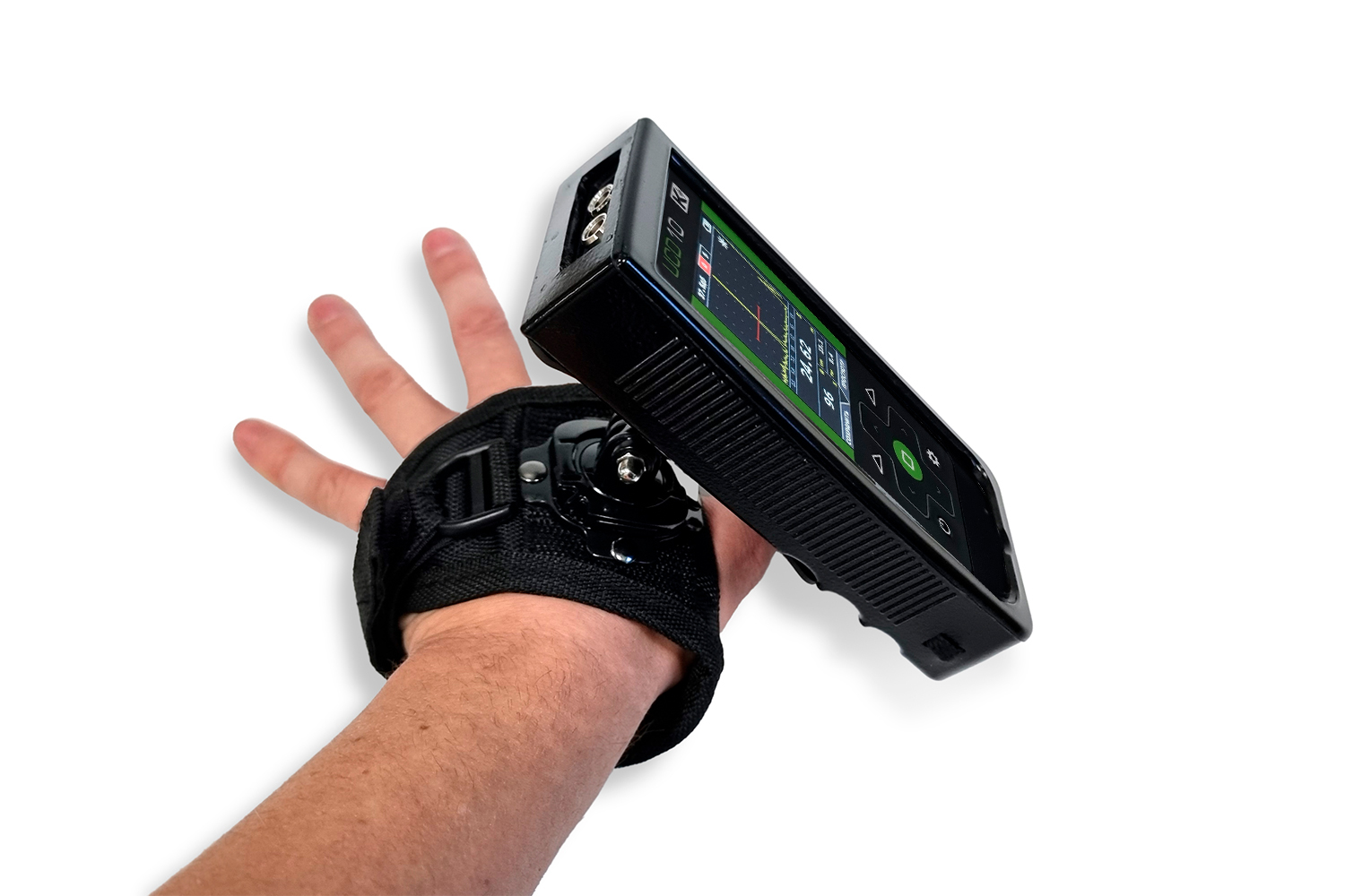 Крепление на руку типа перчатка с поворотной платформой: устанавливается на RFT UNIVERSAL PLATFORM и далее размещается на ладони оператора, при этом можно выбирать положение прибора и фиксировать его в данном положении.